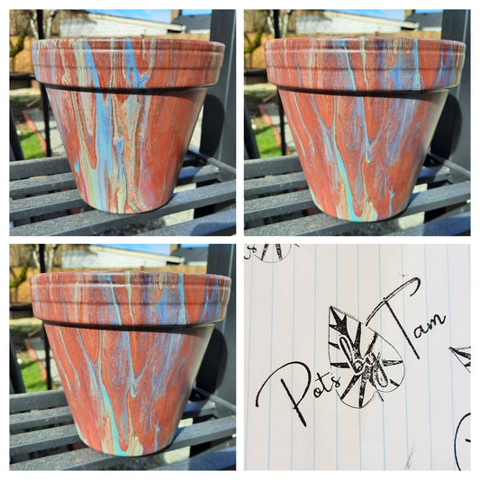 Hand Painted Terra Cotta Planter - Acrylic Pour Method - 6"