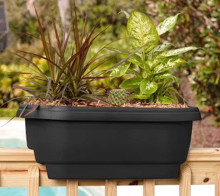 Elegant rolled rim design, railing planter. Grow lettuce and radishes for a salad in this 24" Deck Rail Planter. You can even grow flowers or herbs. Five colors to choose from, you can mix and match!