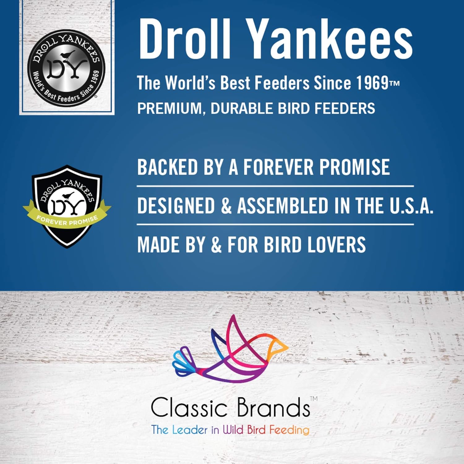 The Droll Yankees Observer window bird feeder is made of clear plastic, so you can actually watch the birds as they stroll up to your avian-size dining table. The feeder holds up to 2 cups of seed, and features sleek lines and a tapered overhanging roof that deflects the weather. Unlike tree-hanging feeders, this unit attaches securely to the outside of a kitchen or living room window with three suction cups. It measures 7 by 3 by 7 inches (W x D x H), includes a 2-inch feeding dish, and carries a lifetime warranty.