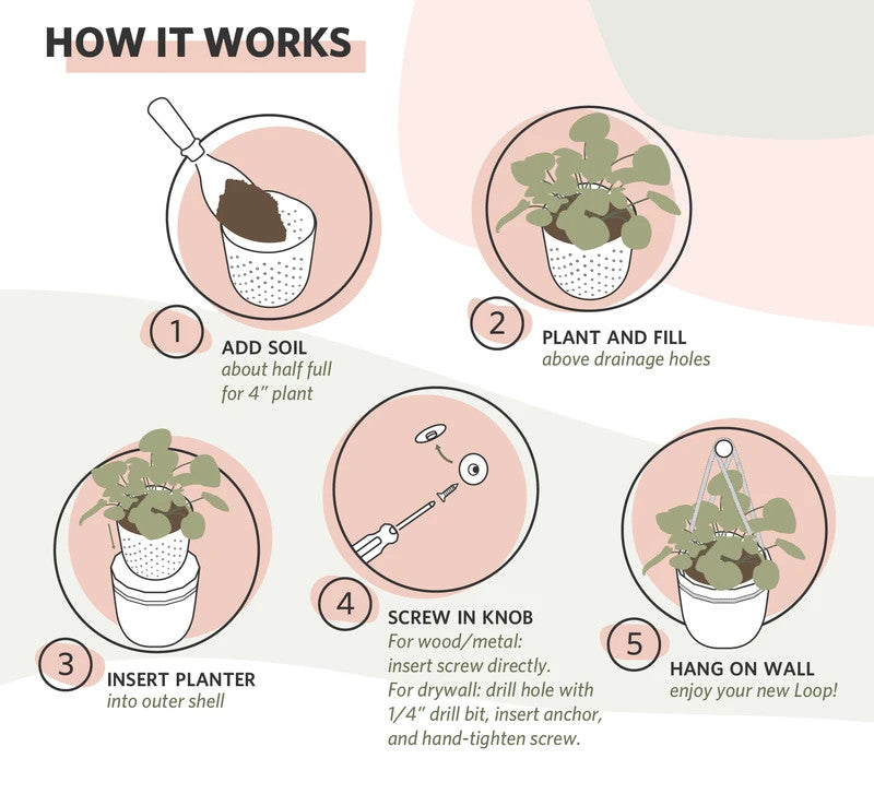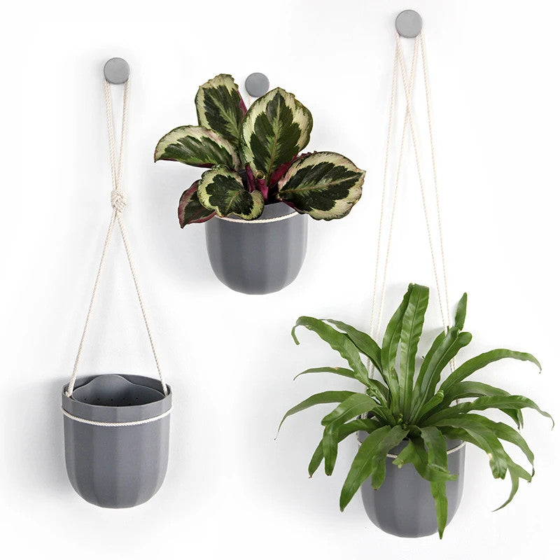 The Wally Loop Hanging Planter is our most versatile planter yet! You can hang it on your wall with the provided color-matching knob, or use it as a table planter to add life to your table or desk. The Wally Loop was thoughtfully designed with true working drainage: the inner shell has drainage AND aeration holes designed to keep your plants healthy and vibrant, and can be easily removed from the outer shell when planted. The Wally Loop comes standard with 10 feet of natural macramé rope so that you can follow our easy-to-use directions for long or short hanging looks, or create your own unique look to match you and your plant’s personalities.