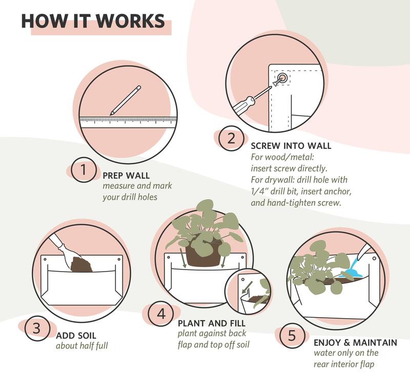 Make your walls gorgeously lush with our Wally Pro Pockets! Wally Pro Pockets are lightweight modular containers that are made of sustainably manufactured materials (100% recycled plastic water bottles) and are hand-stitched in the USA with durable UVA resistant thread. Wally’s breathable front panel allows soil to aerate naturally, encouraging plants to air prune while maintaining even levels of moisture.